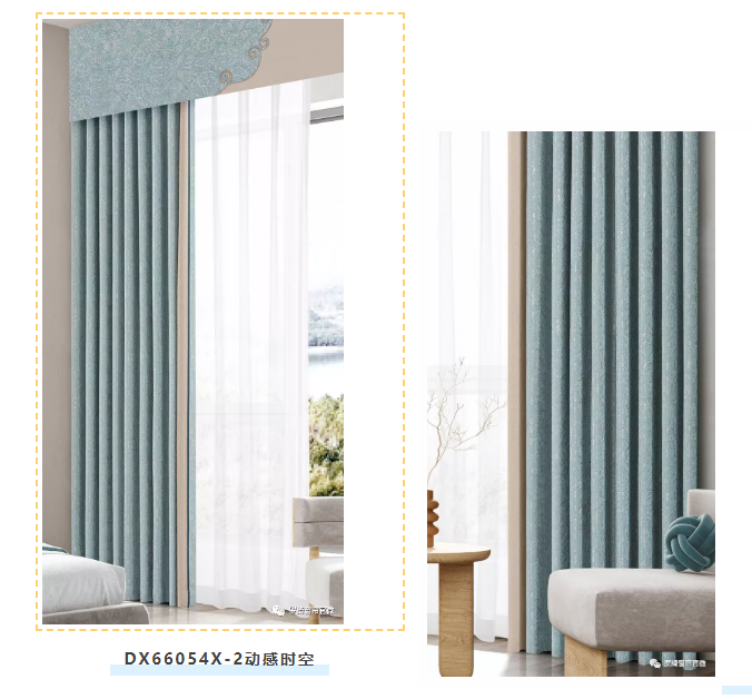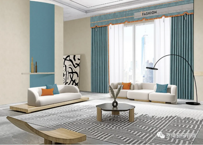 這一款窗簾,它的主色調本身運用的就是時尚度比較高的藍色調。