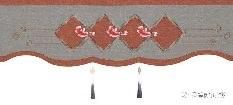 簾頭上的錦鯉和金邊幾何圖形為空間注入了靈魂,展現出了不一樣的層次感與畫麵感。